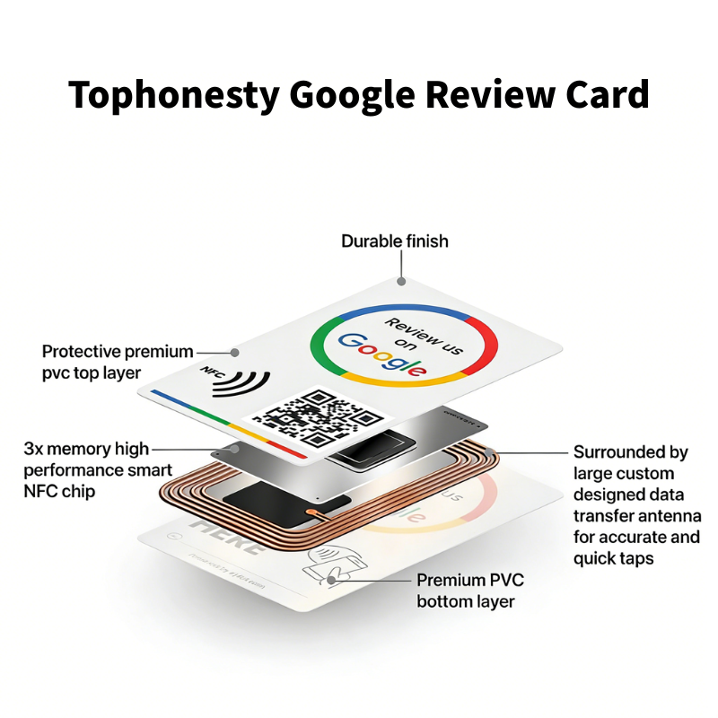 Carte NFC Personnalisable, Programmable et Réinscriptible 13,56 MHz pour Avis Google avec Code QR, pour Professionnels
