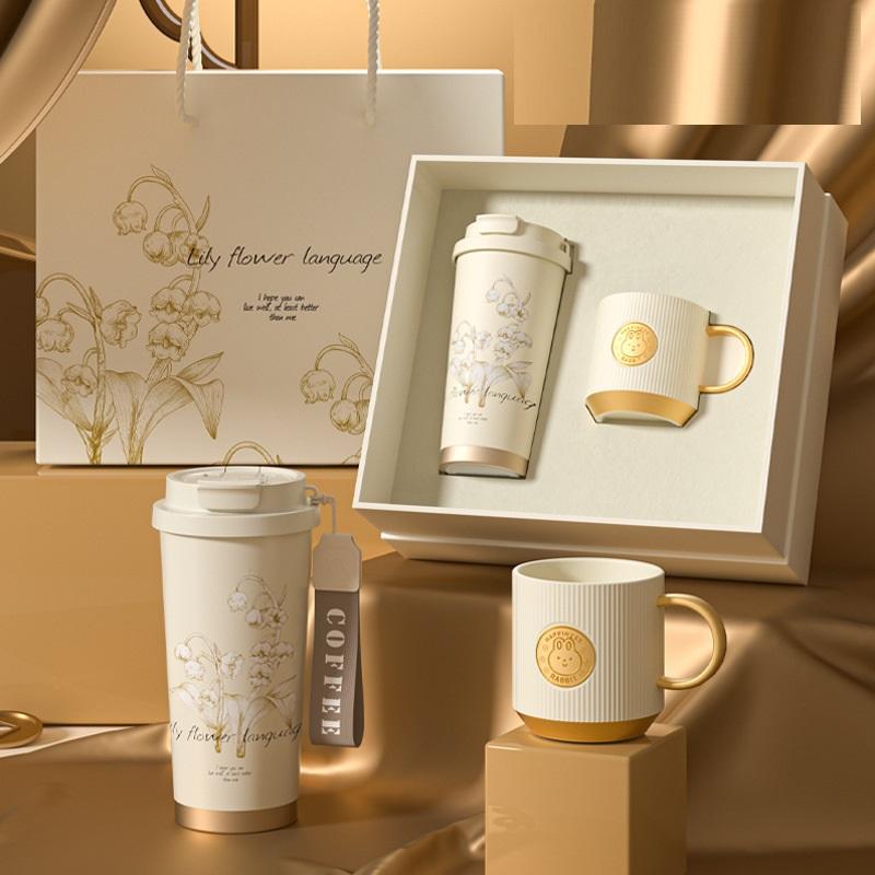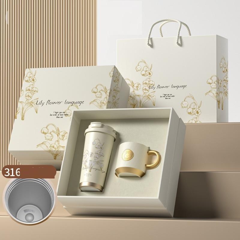 Ensemble de tasses à café en céramique en acier inoxydable à double paroi isolées sous vide en forme de cône, coffret cadeau promotionnel personnalisé
