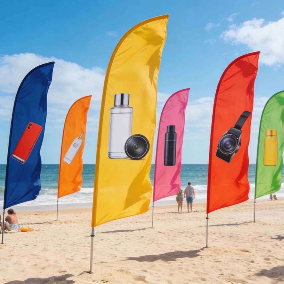 Drapeaux à plumes promotionnels personnalisés, bannières suspendues, drapeaux de plage - Polyester imperméable, design écologique et portable, agences de voyage