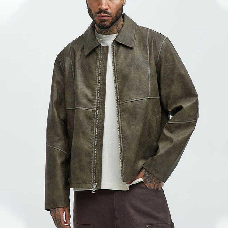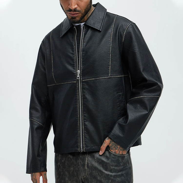 Veste en cuir PU personnalisée pour hommes Veste d'hiver à fermeture éclair Veste en cuir à col de moto pour hommes 2025