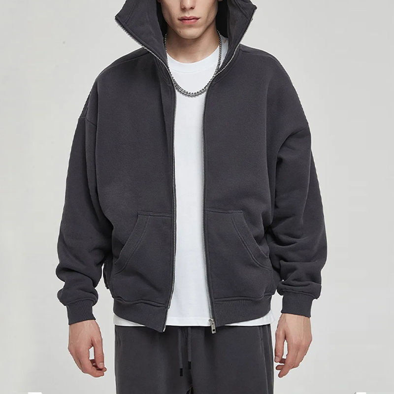 Sweat à capuche zippé en coton 500 g/m² imprimé bouffant personnalisé Streetwear veste vierge lourde ensemble sweat à capuche zippé surdimensionné style masqué