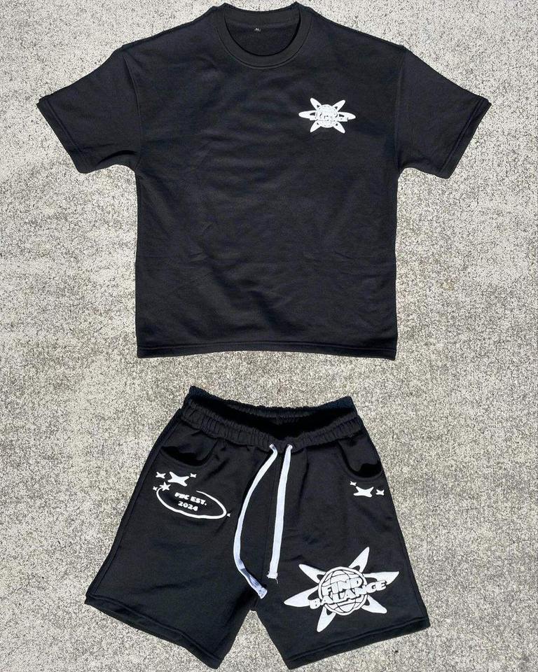 Short chemise vintage délavée à l'acide à imprimé bouffant personnalisé Streetwear vintage sérigraphie d'entraînement avec strass et ensembles de t-shirts pour hommes
