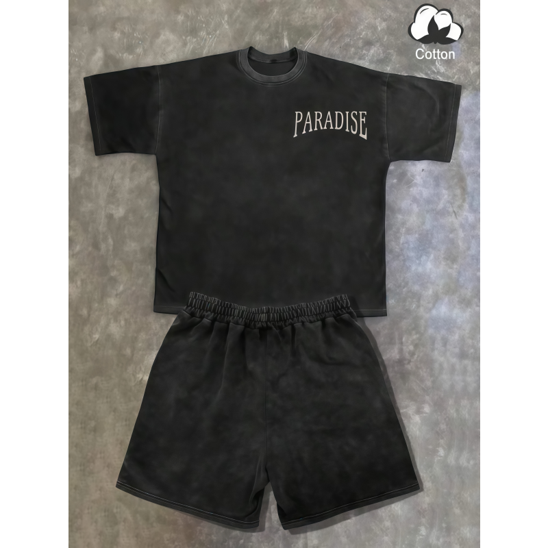 Ensemble de survêtement court vintage délavé avec impression en relief personnalisée, streetwear vintage, impression sérigraphiée avec strass et ensembles de t-shirts pour hommes