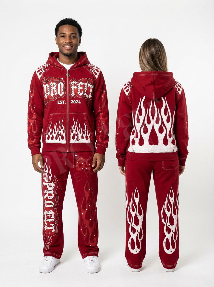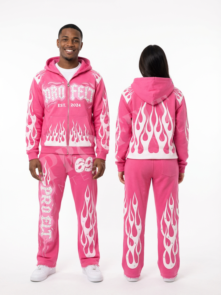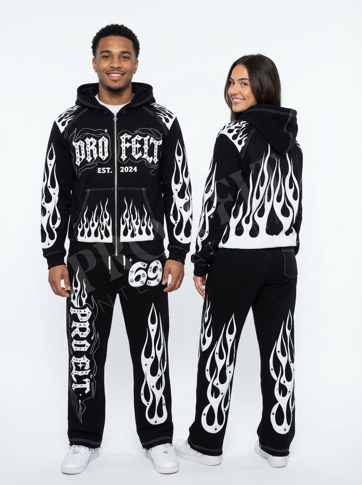 Survêtement unisexe personnalisé avec impression en relief, sweat à capuche zippé et pantalon évasé, style streetwear et sportswear, en polaire respirante, mode hiver
