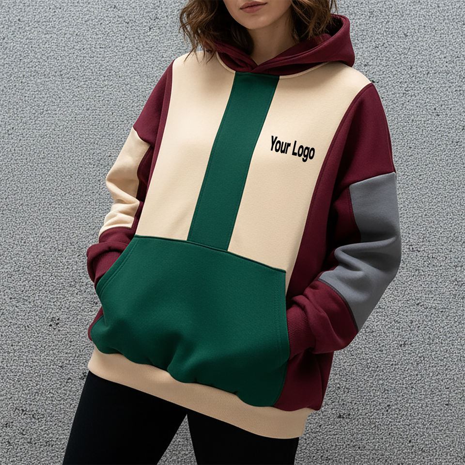 Sweat à capuche pour femme, coupe oversize, 100% coton, 400 GSM, épaules tombantes, color block, avec logo imprimé en relief personnalisé, poids lourd