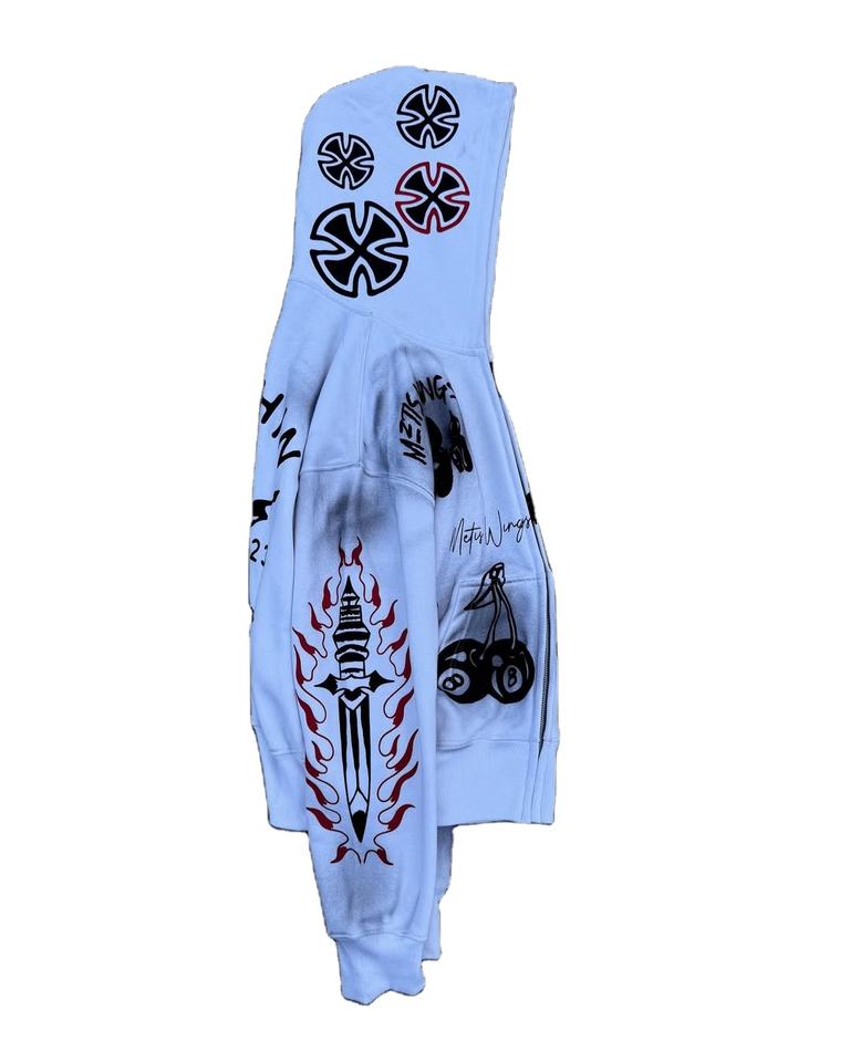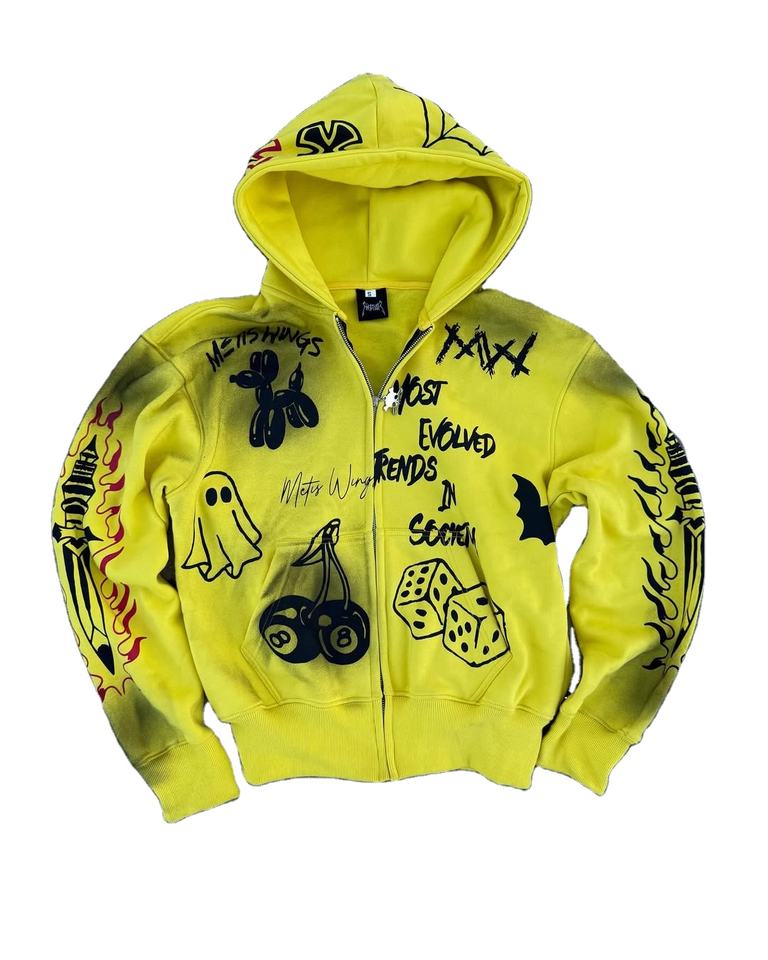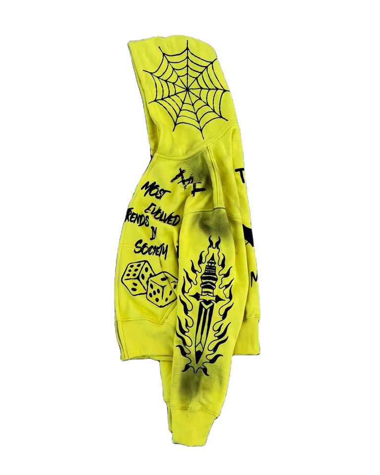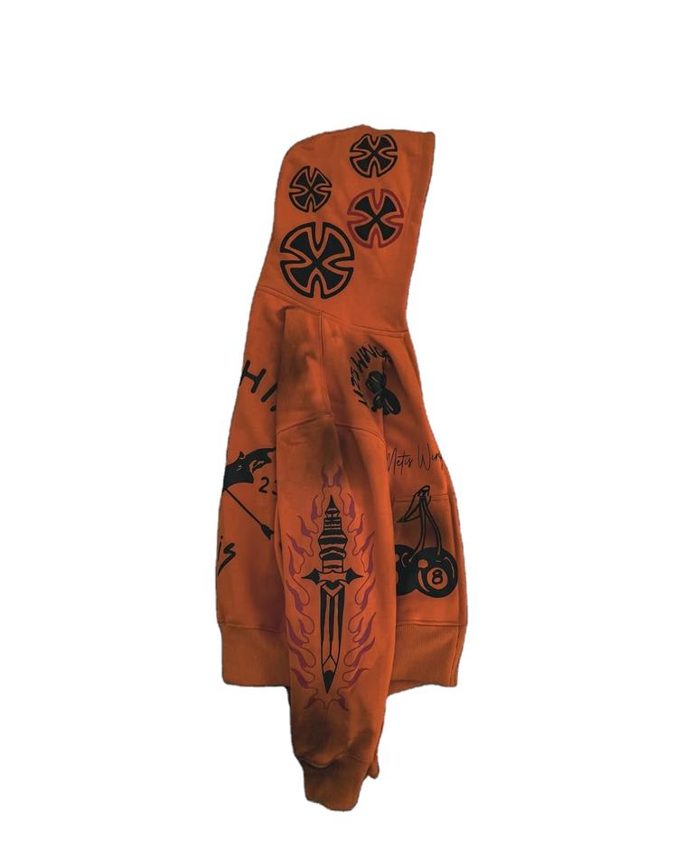 Sweat à capuche surdimensionné pour homme, imprimé en relief, effet délavé, en molleton 100% coton épais, avec fermeture éclair ornée de strass de haute qualité