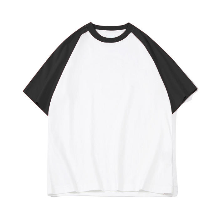 T-shirt unisexe à col rond en jersey de loisirs à blocs de couleur, impression personnalisée de logo en relief, poids lourd 200 g/m², coupe régulière, blanc