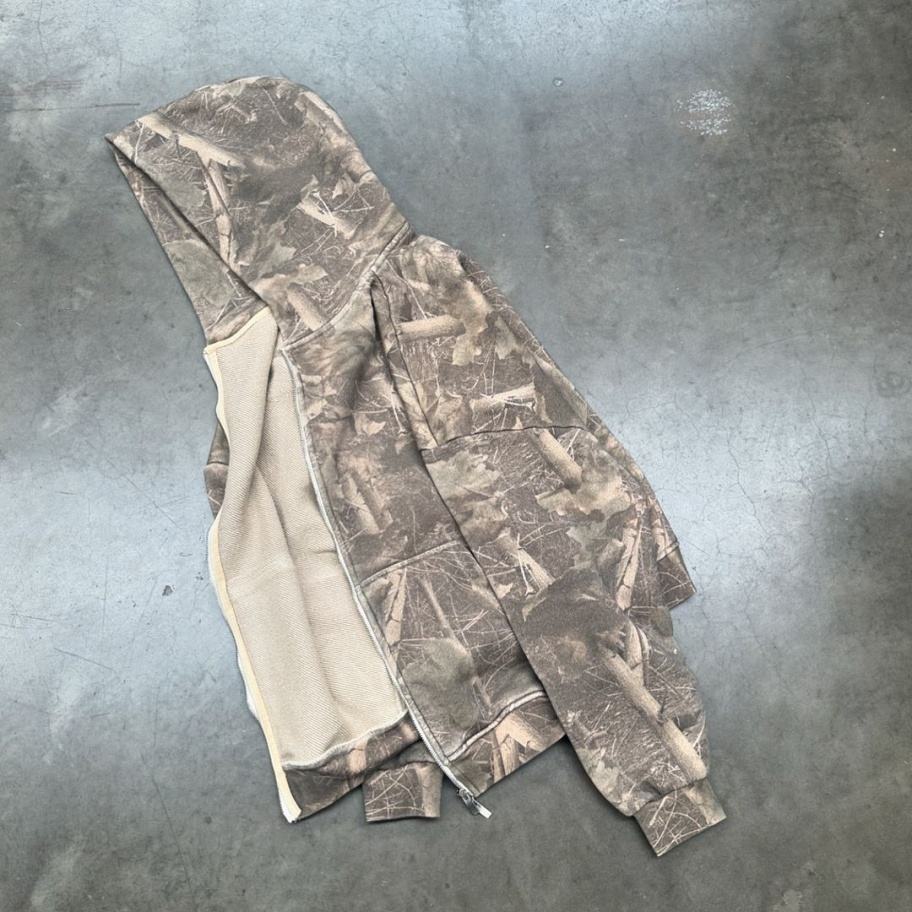 Sweat à capuche personnalisé en polyester et coton, doublé, à col rond, imprimé DTG, lourd, camouflage de chasse, véritable arbre, pour homme