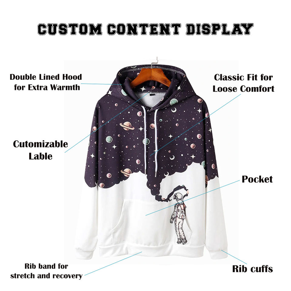 Sweat à capuche spatial Elite Astronaut | Pull-over streetwear personnalisé en polyester sublimé pour homme | Haut graphique urbain à imprimé galaxie 3D