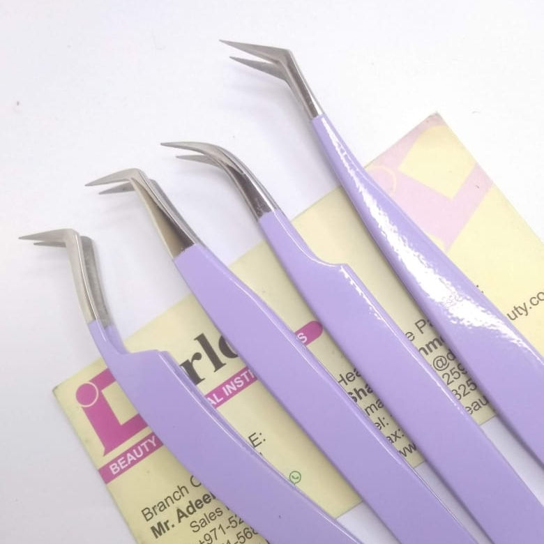 Pince à épiler pour cils de couleur violette personnalisée, marque privée, pince à épiler professionnelle pour extension de cils en acier inoxydable