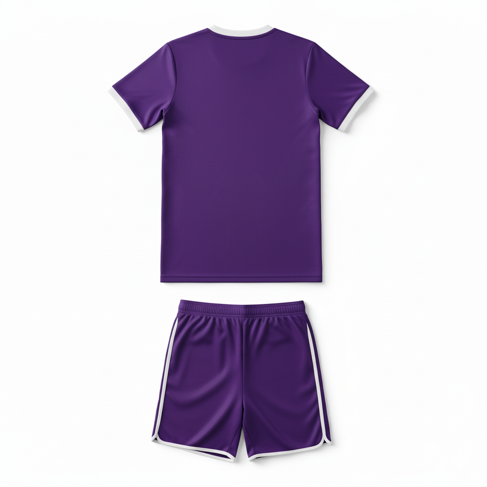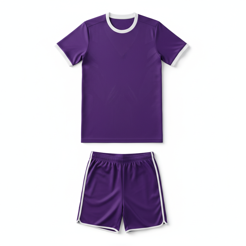 Ensemble de maillot de football personnalisé violet - Ensemble de maillot et short pour adulte avec des bandes blanches contrastées 100% polyester respirant à séchage rapide