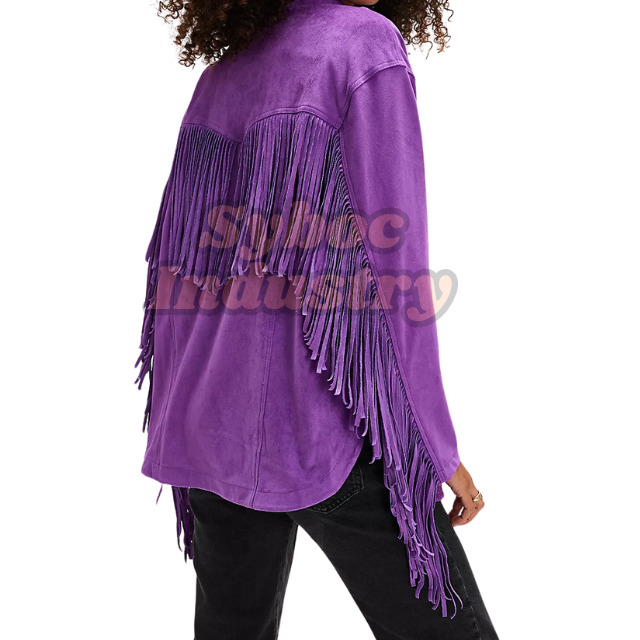 Veste en cuir à franges en daim violet personnalisée pour femmes veste en cuir véritable Style occidental Cowgirl vêtements d'extérieur à la mode
