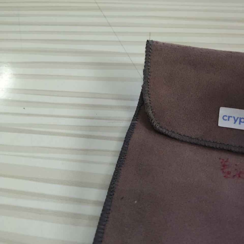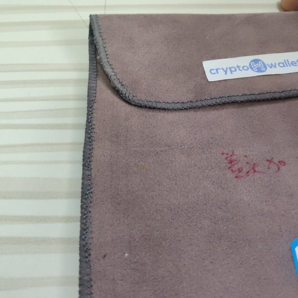 Pochette enveloppe personnalisée en suède violet avec étiquette tissée, sac de protection fin pour portefeuilles de crypto-monnaies et gadgets technologiques