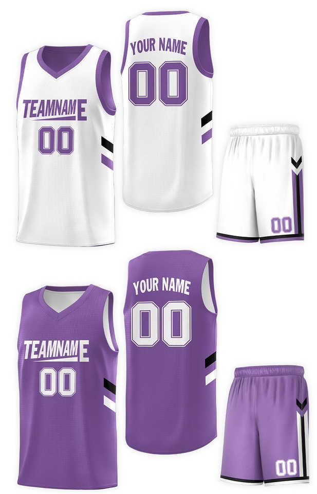 Maillot de basket-ball personnalisé, design double face, violet et blanc, vêtements de sport