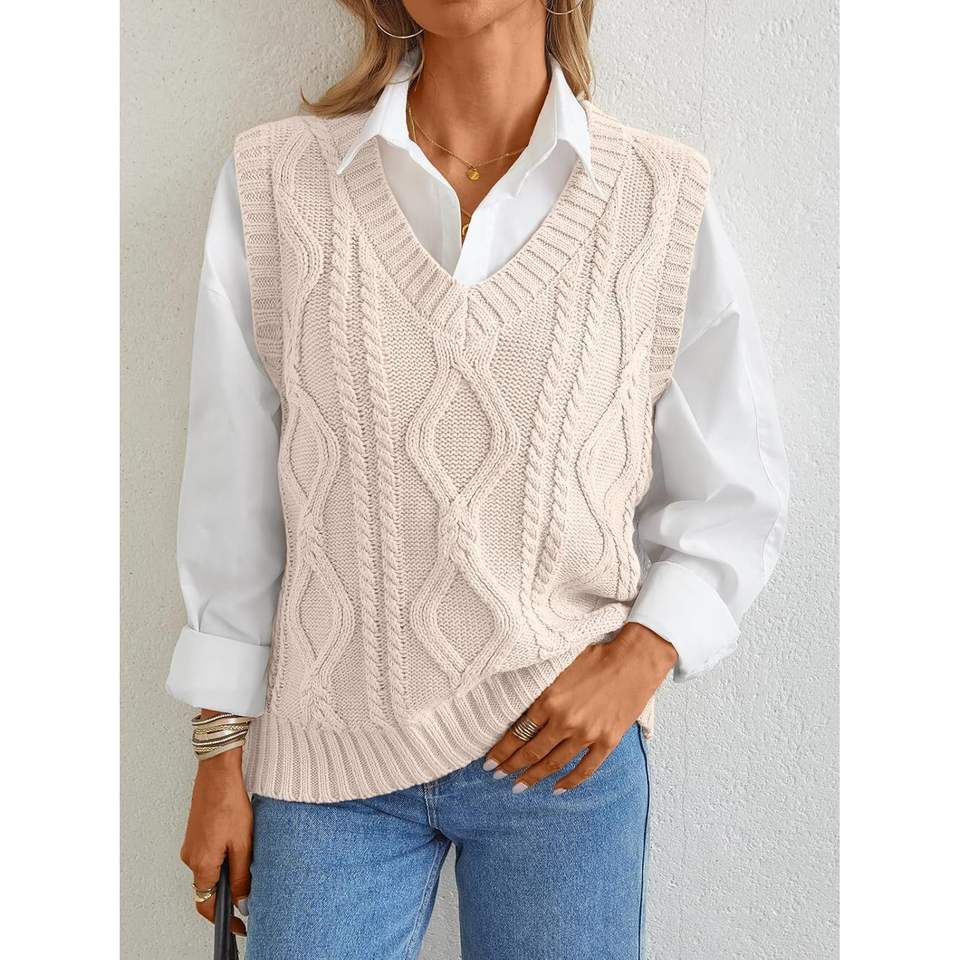 Pull en tricot torsadé à col en V surdimensionné personnalisé pour femmes, gilet décontracté pour femmes avec design sans manches
