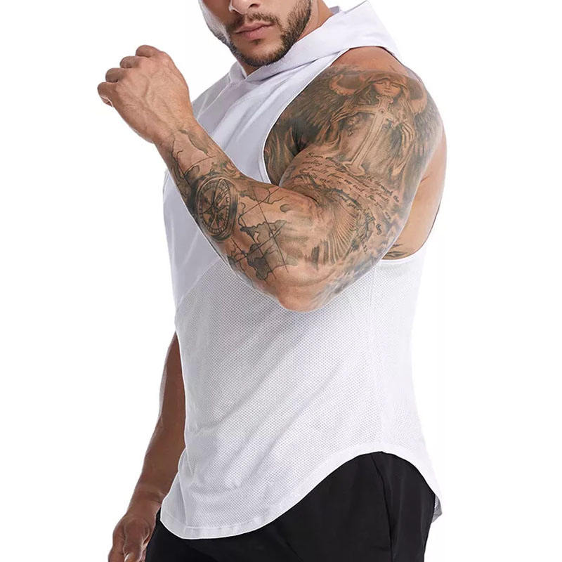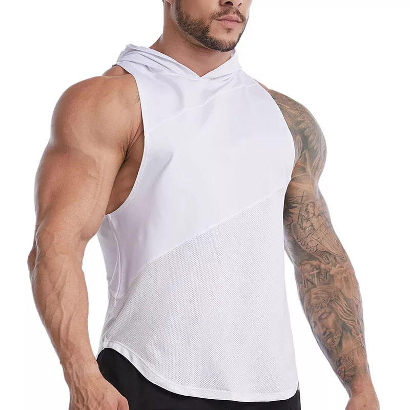 Débardeur de sport à capuche pour homme, personnalisé, séchage rapide, en maille, coupe musclée, sans manches, respirant, pour entraînement et musculation