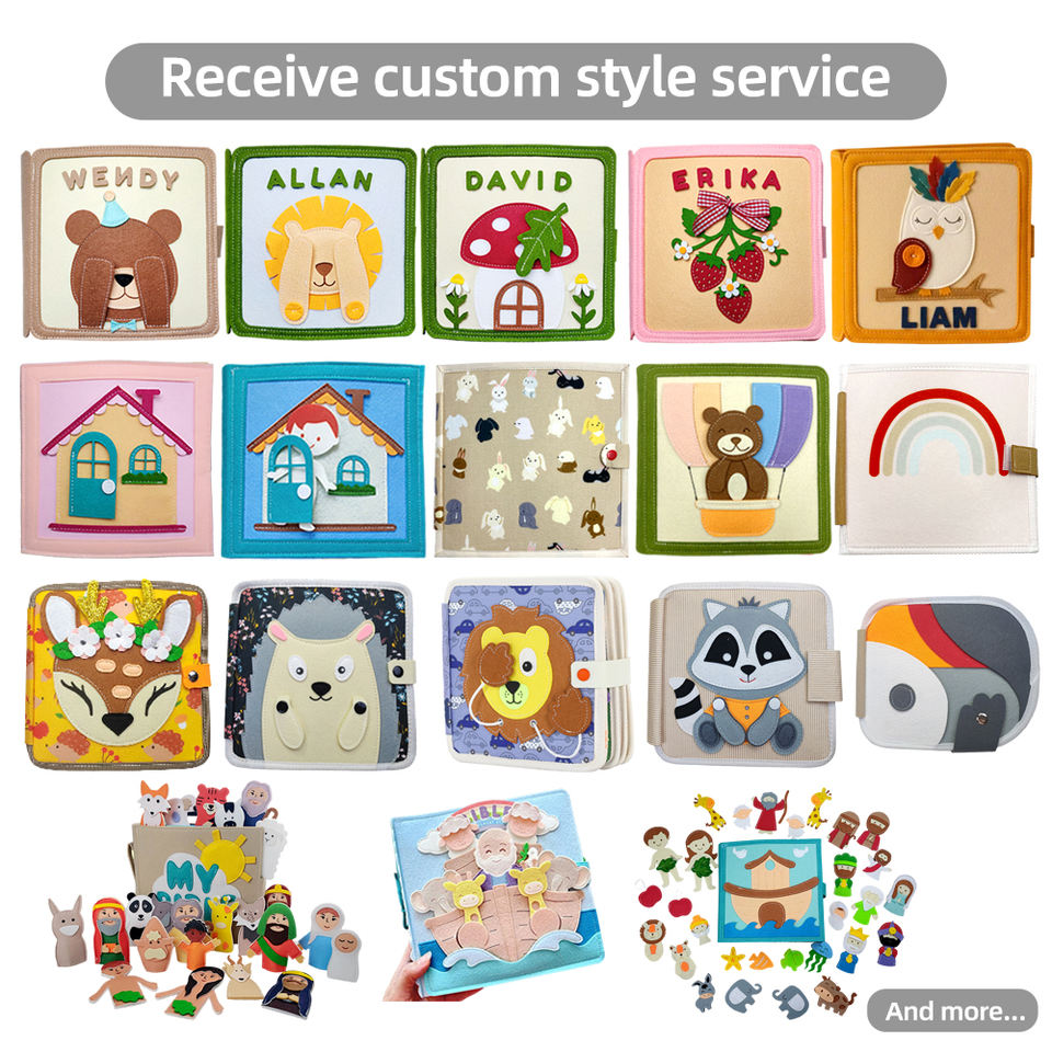 Livre d'activités personnalisé en feutre doux pour tout-petits, jouet éducatif sensoriel Montessori, 1-6 ans, étiquetage privé