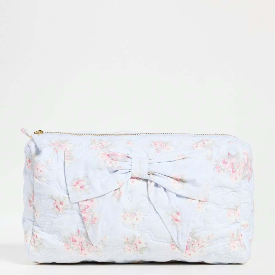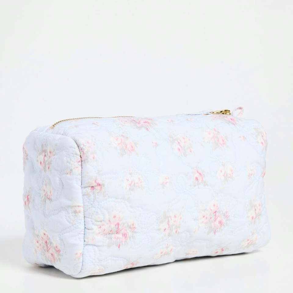 Pochette de voyage personnalisée en toile écologique, matelassée, imprimée floral sur toute la surface, réutilisable, imperméable, grande taille, avec fermeture éclair et nœud papillon pour filles