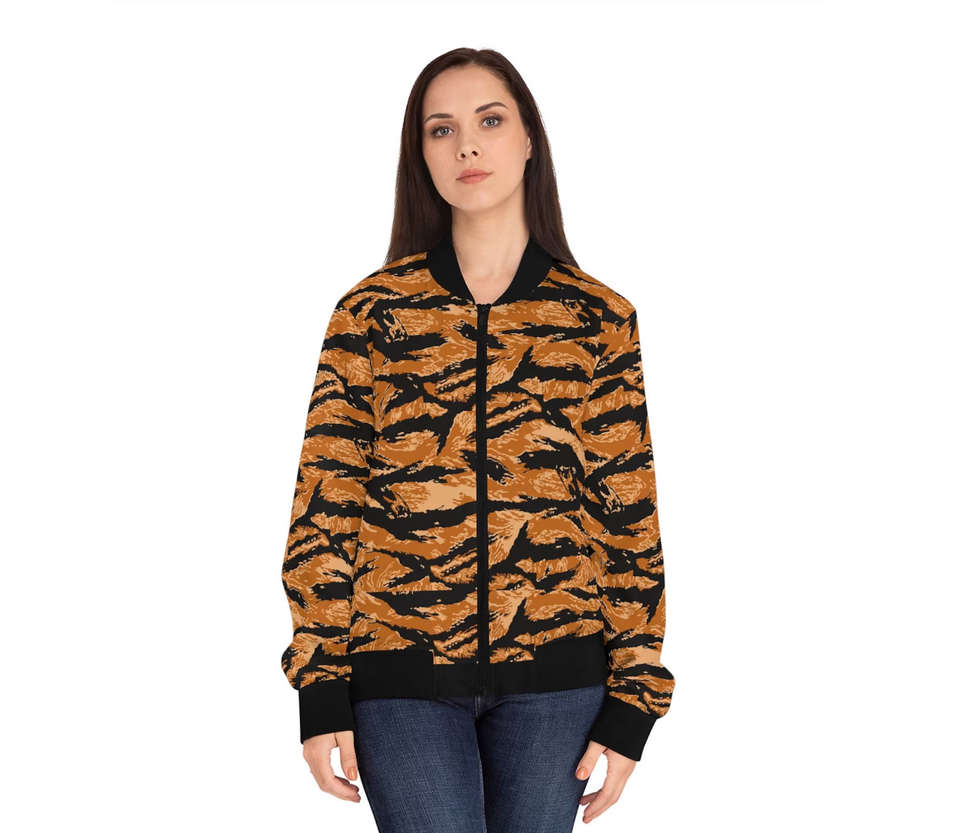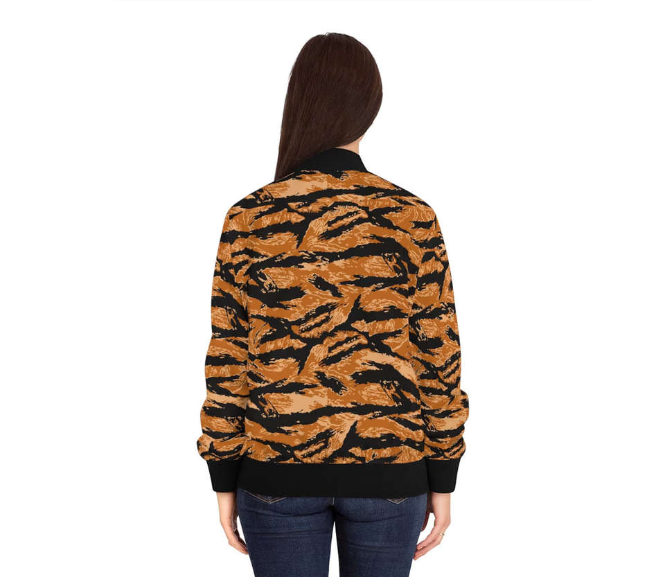 Blouson Bomber Varsity Personnalisé Imprimé Léopard Camouflage Matelassé Imperméable Réversible en Soie Satinée Tricotée avec Impression par Transfert Thermique