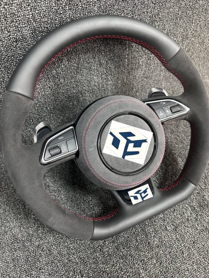 Volant en cuir perforé à fond plat de style RS SLine personnalisé pour Audi A3 A4 B7 A6 C7 R8 RS3 A7 RS5 RS6 A8 Q5 Q8
