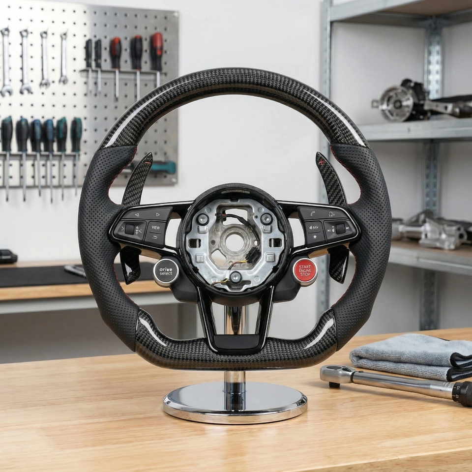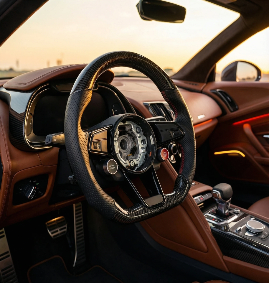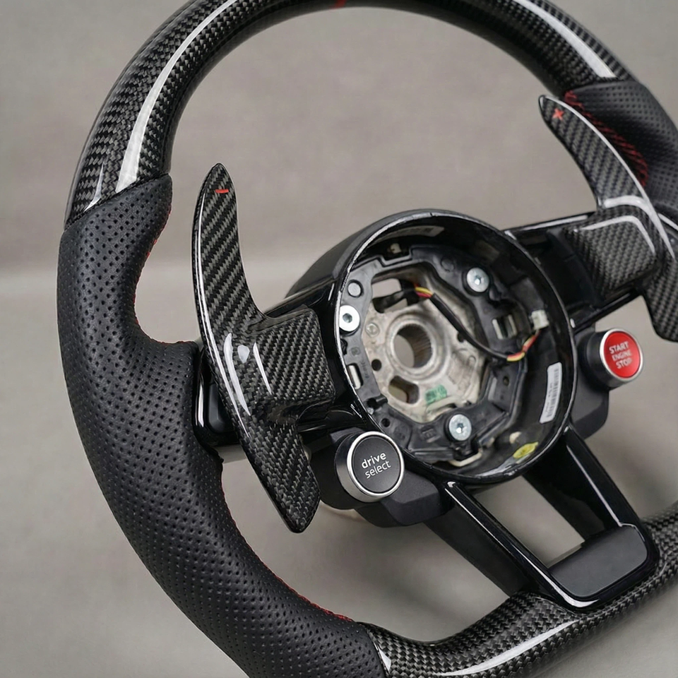Volant de course personnalisé en cuir et fibre de carbone pour Audi R8 A3 A4 A5 A6 A7 S3 S5 Q5 RS - Ajustement parfait pour les modèles Audi