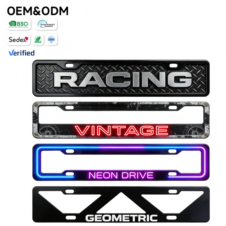 Cadre de plaque d'immatriculation personnalisé pour voitures de course et vintage - Design en plaque diamantée et néon pour la personnalisation automobile
