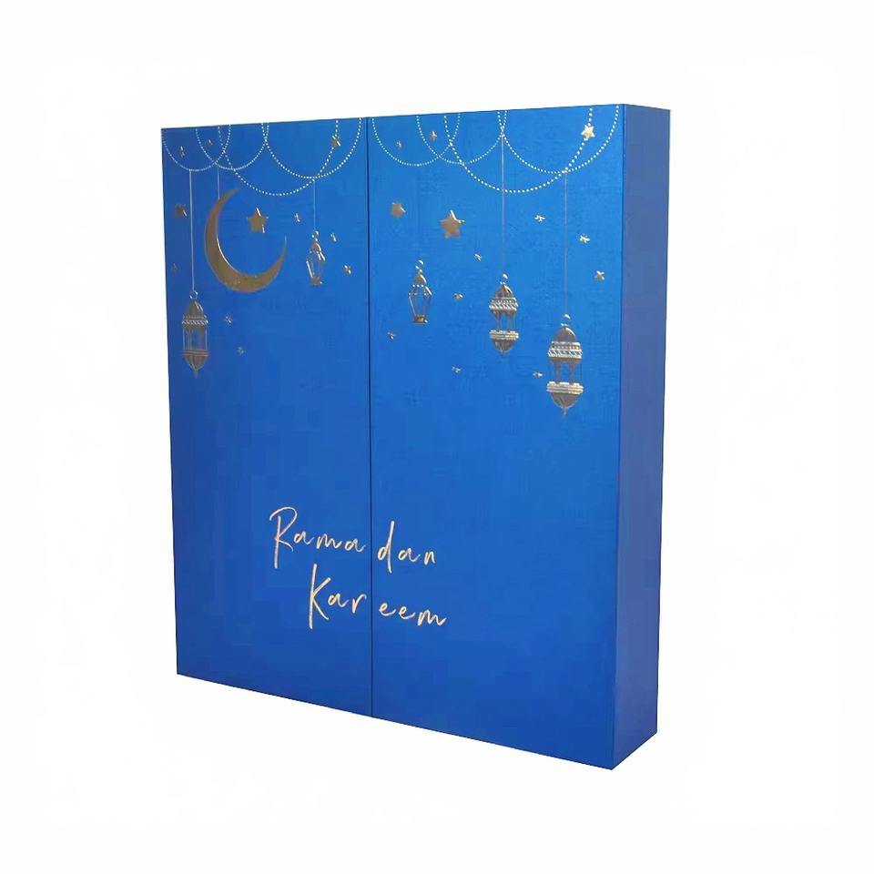Calendrier de l'Avent Beauté Ramadan Personnalisé Boîte d'Emballage Cosmétique Lune et Étoile pour l'Aïd Dattes Chocolat Cadeau Fournisseur de Comptes à Rebours et Cadeaux de l'Aïd