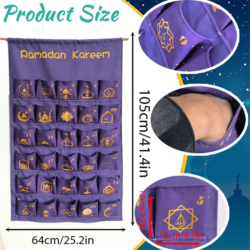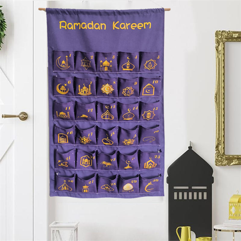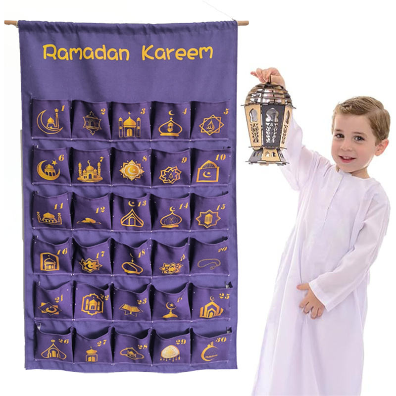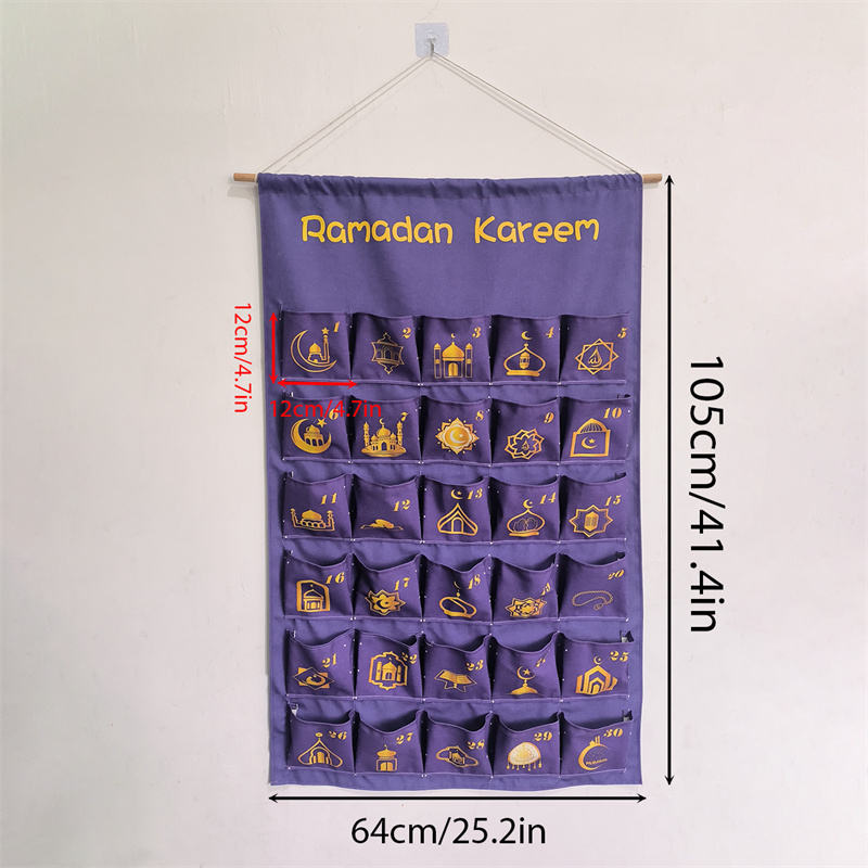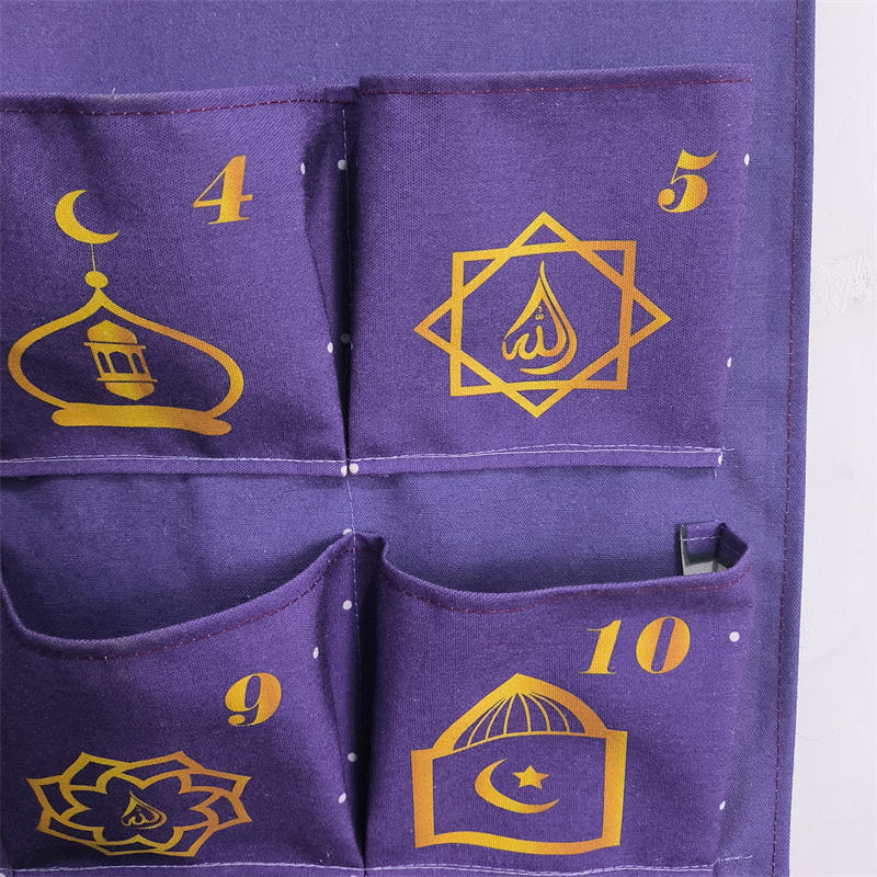 Calendrier de compte à rebours suspendu personnalisé en coton écologique pour le festival du Ramadan Eid Mubarak 60x105cm