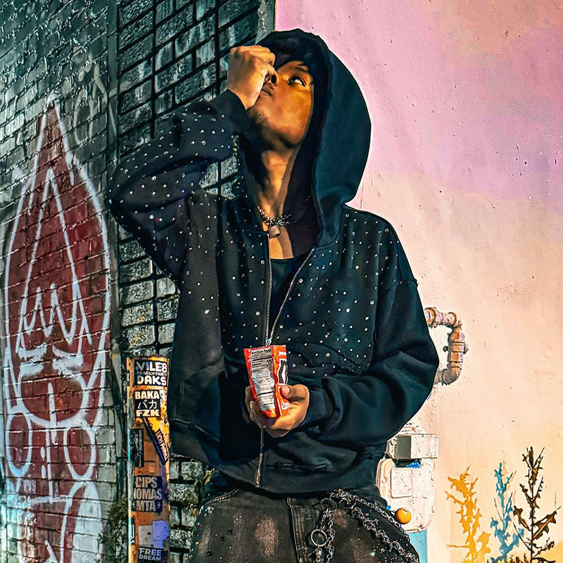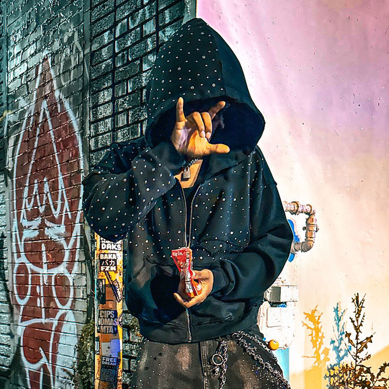 Sweat-shirt à capuche personnalisé pour rave, avec paillettes, strass, transfert thermique, orné de cristaux, étincelant et orné de pierres