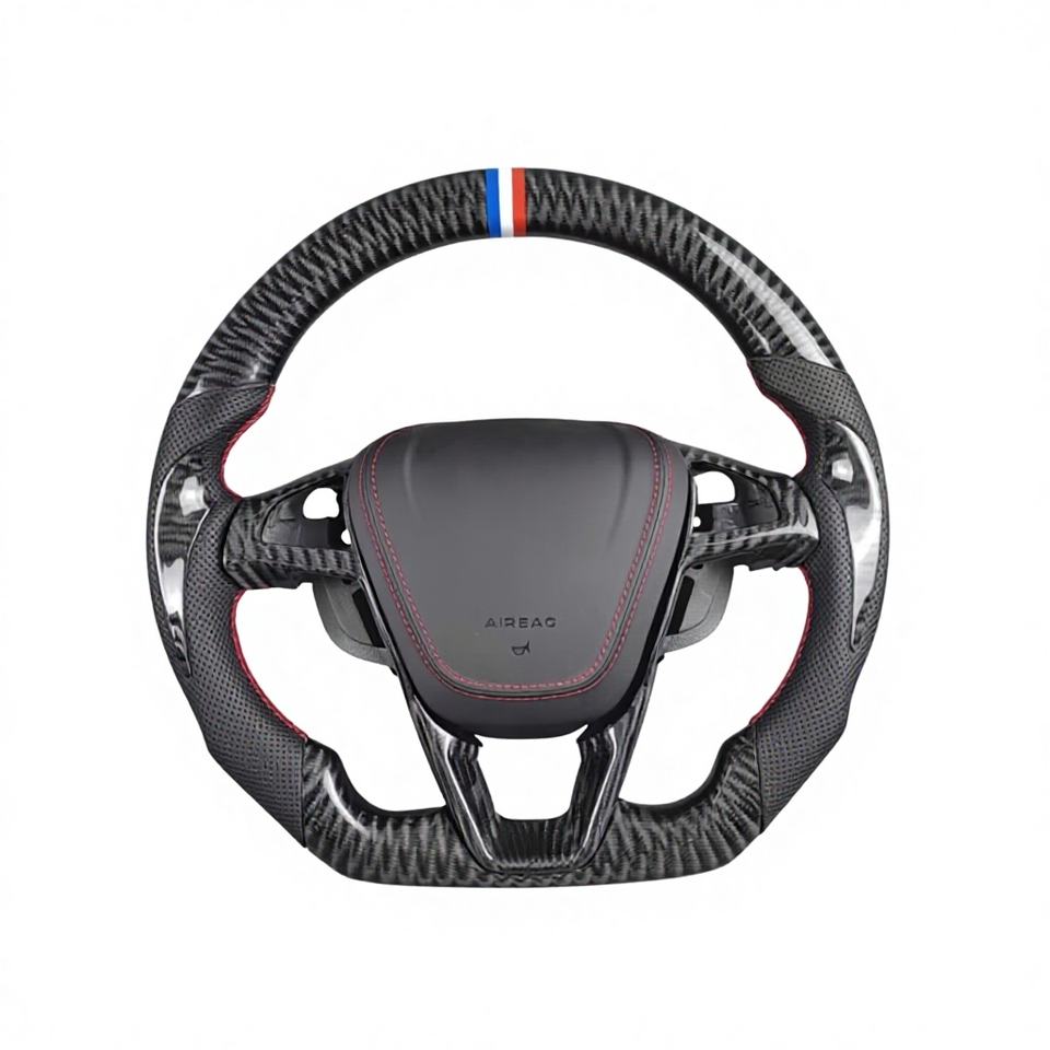 Volant de course sport en fibre de carbone véritable personnalisé pour Ford Trim EcoBoost GT/Shelby GT350/Focus 2013 2014 2015 2016 2018