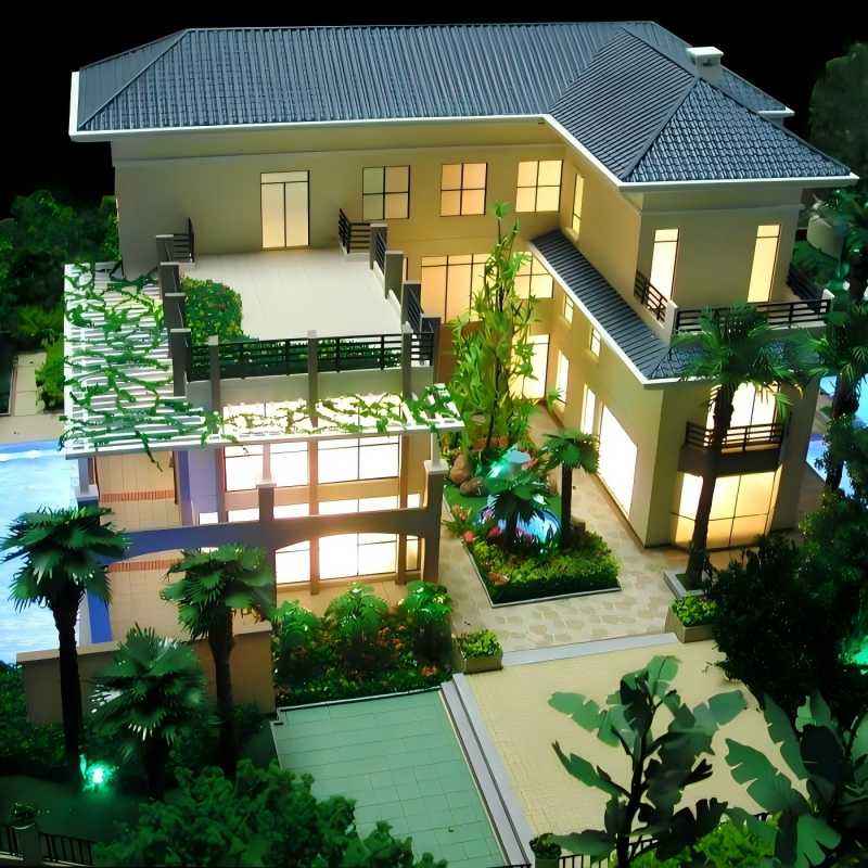 Modèle de construction immobilière personnalisé à grande échelle 1:30 avec éclairage LED, couleur et forme personnalisées, maison en bois moderne, villa imprimée en 3D
