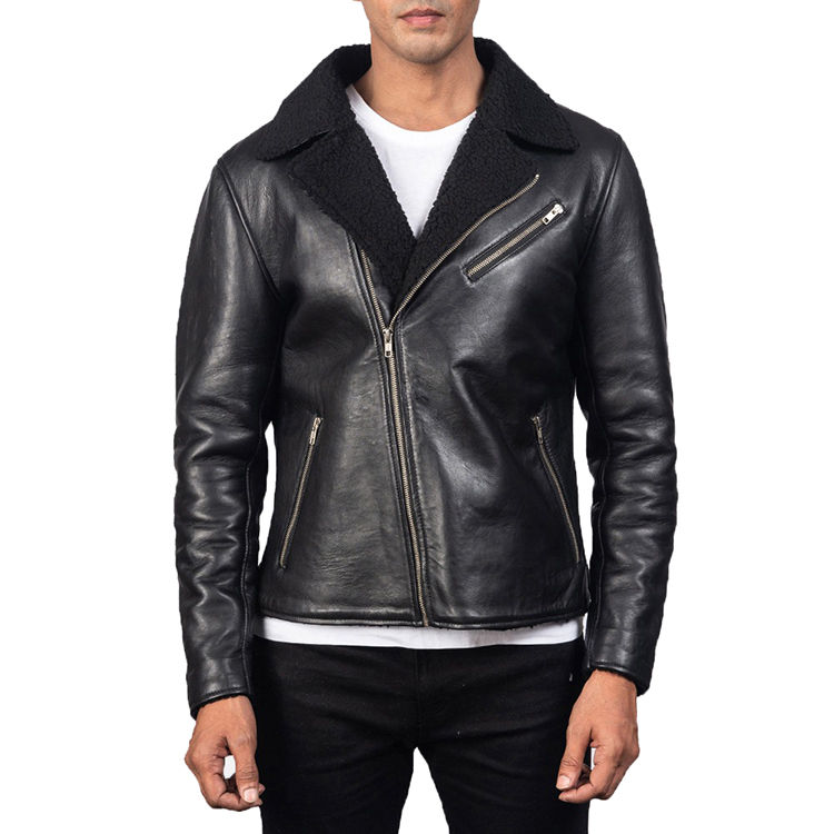Veste en cuir véritable enduite personnalisée avec logo sur le devant, écologique et décontractée pour hommes, noire, prix d'usine, vente en gros au Pakistan