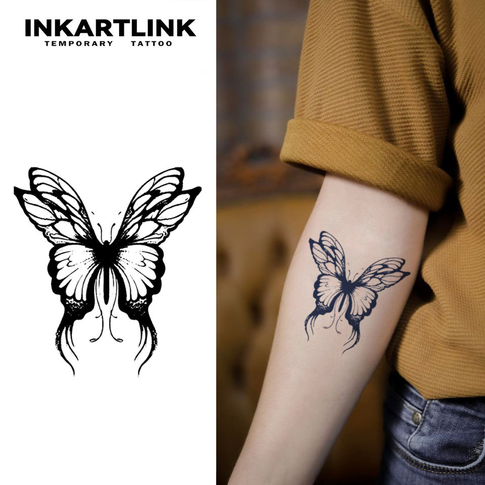 Autocollant de tatouage temporaire réaliste papillon aux herbes, imperméable, longue durée (15 jours), semi-permanent, pour bras et épaule