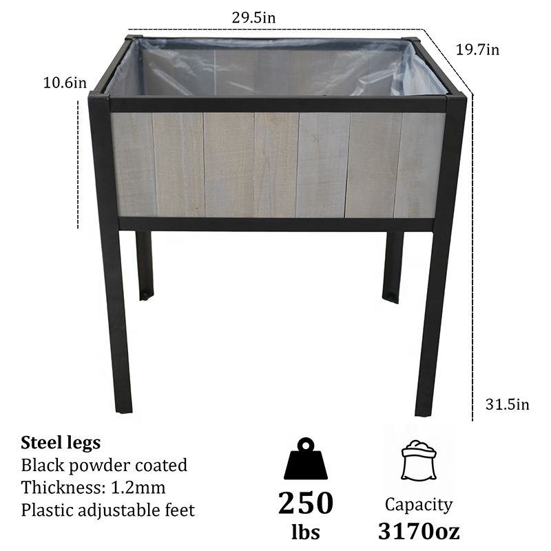 Jardinière rectangulaire en bois personnalisée avec pieds en acier enduit de poudre | Boîte à fleurs pour maison et jardin, intérieur et extérieur