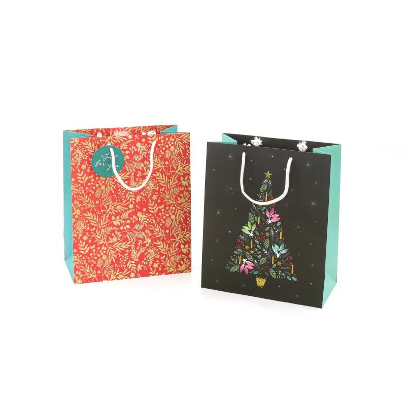 Sac cadeau en kraft blanc recyclable personnalisé de taille moyenne avec étiquette en corde de coton, impression 4 couleurs pour cadeaux artisanaux