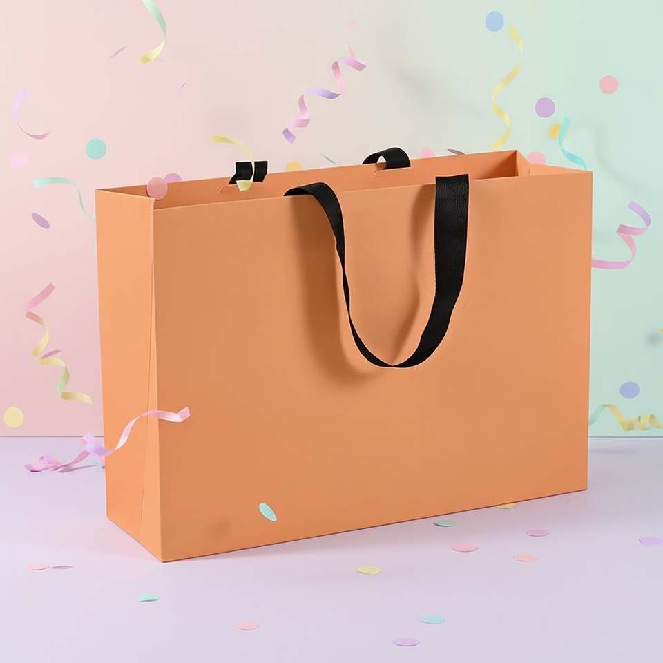 Sacs en papier kraft minimalistes recyclables personnalisés avec poignées robustes, idéaux pour l'emballage de cadeaux, les plats à emporter et les emballages de vente au détail