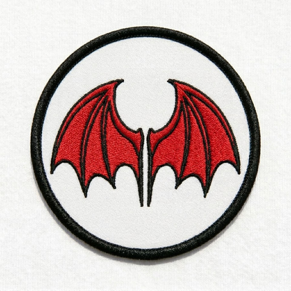 Patch thermocollant personnalisé Ailes de Diable Rouge brodé à la machine, Logo gothique Ailes de chauve-souris, Emblème à coudre en gros pour vêtements et sacs