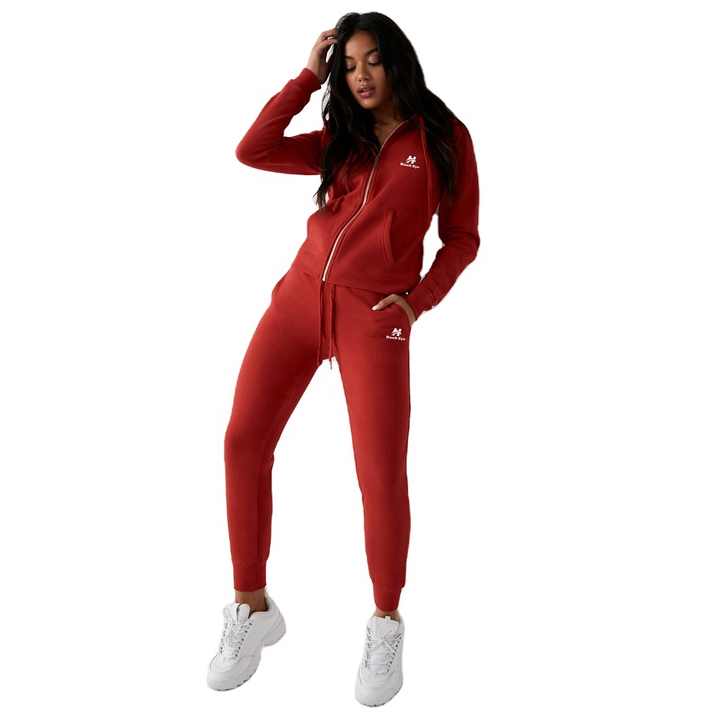 Sweat à capuche zippé rouge vieilli personnalisé Survêtements de sport pour femmes Ensemble de pantalons 2 pièces de jogging Ensemble de survêtements
