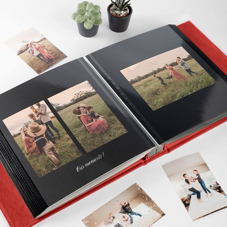Couverture en daim rouge personnalisé album photo de mariage livre personnalisé mémoire Scrapbook couverture rigide livre d'or