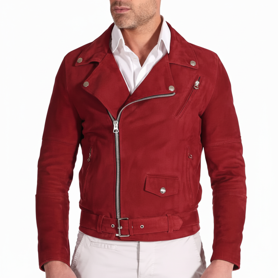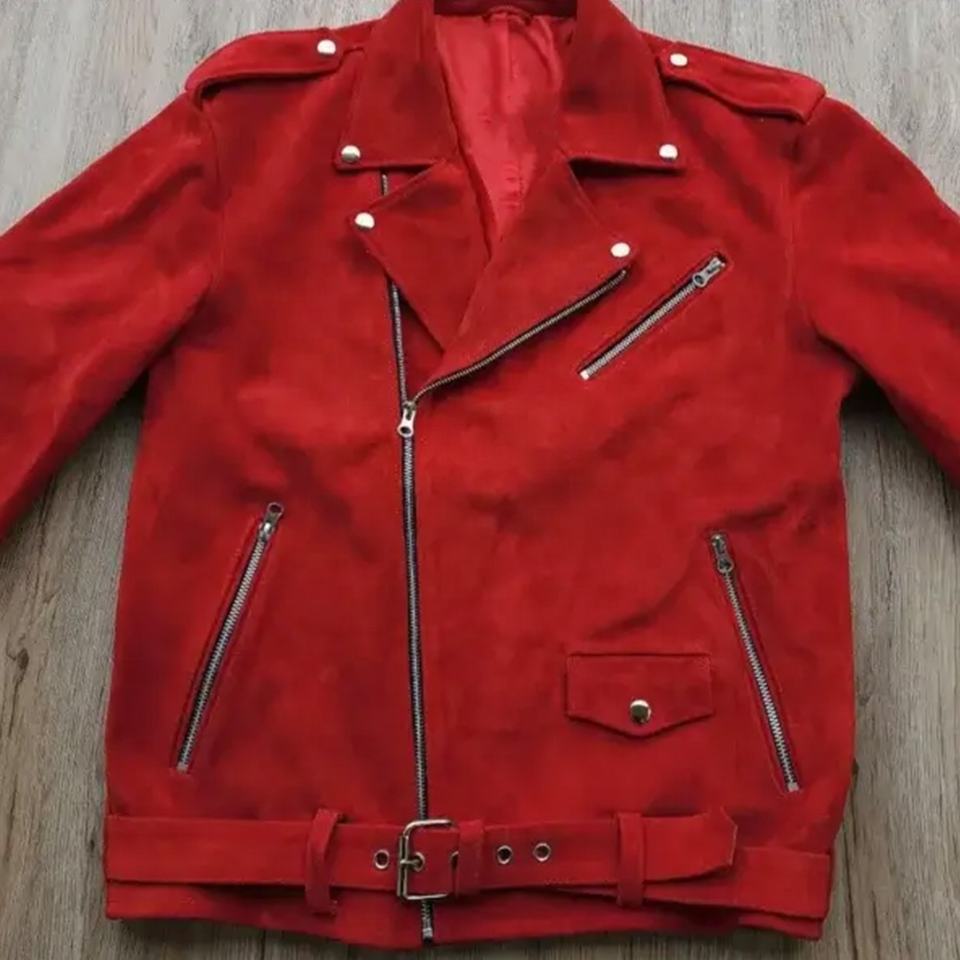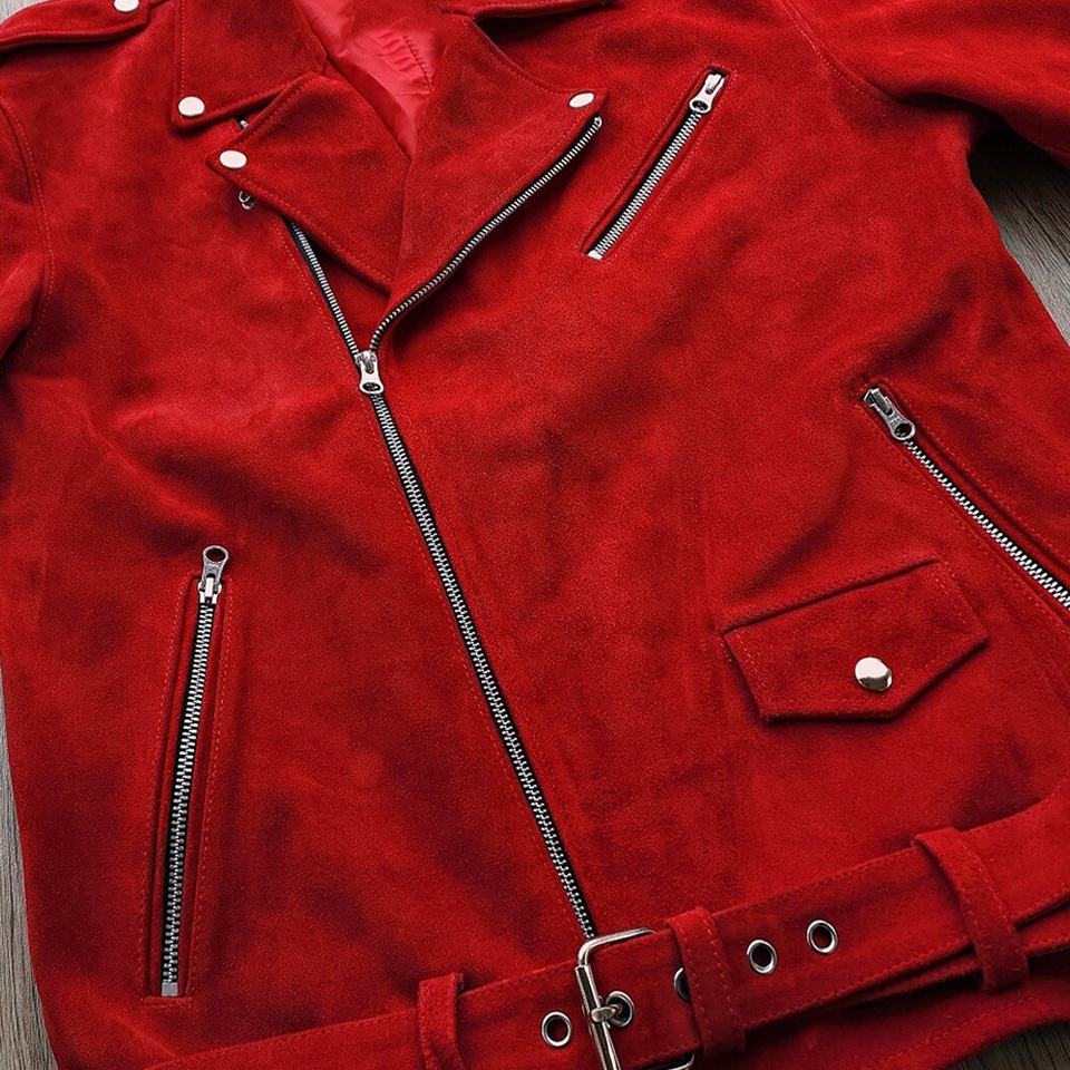 Veste en cuir suédé rouge personnalisée taille plus style motard vintage avec duvet et tissu printemps saison veste de moto