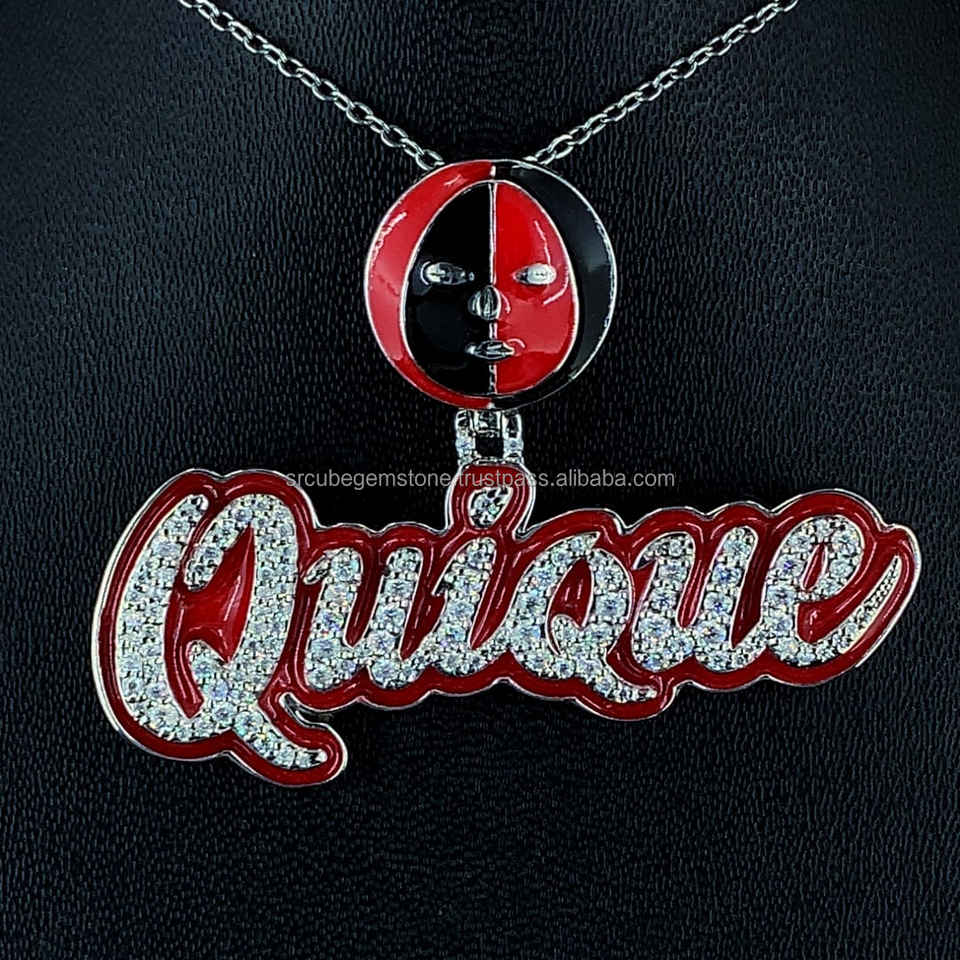 Pendentif personnalisé rouge VVS Moissanite Logo diamant glacé taille brillant 925 argent plaqué or Hip Hop lettre émail pendentif fêtes