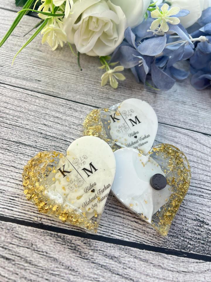 Favors de mariage personnalisés en résine dorée époxy, aimants en forme de cœur ou ronds, à motifs floraux, pour douche nuptiale, fiançailles, cadeaux pour invités
