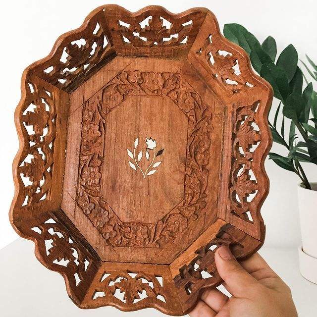 Plateau de service décoratif rond en résine personnalisé avec poignées pour le petit-déjeuner, provenance Inde