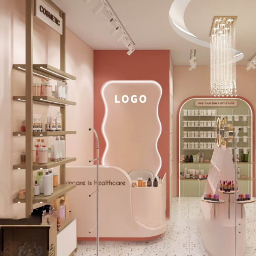 Vitrine personnalisée pour magasin de détail Étagères à cosmétiques murales en bois Vitrine pour maquillage Présentoir mural élégant