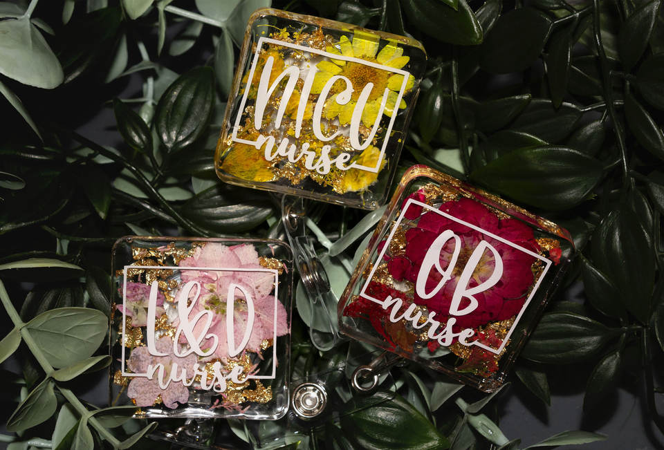 Badge rétractable floral personnalisé pour infirmière, badge de fonction personnalisé, badge floral arc-en-ciel