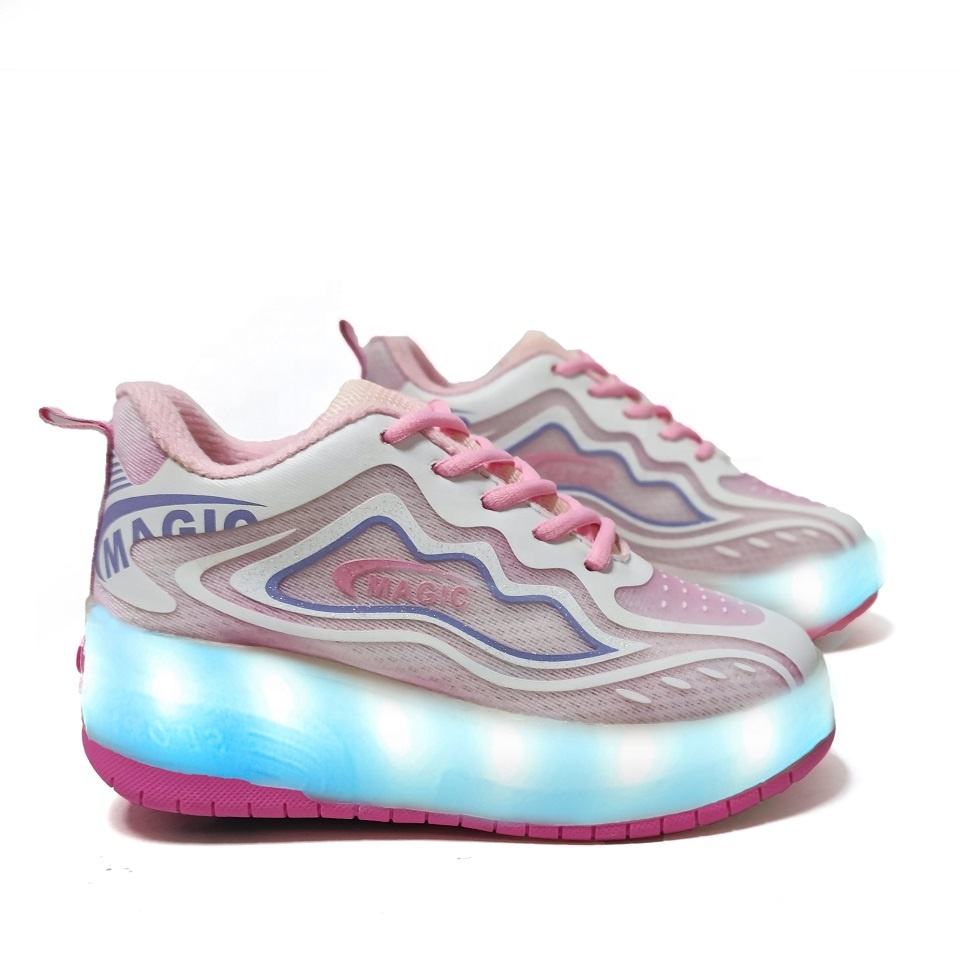 Chaussures à talons amovibles Zapatos Con Ruedas Para Nios rétractables personnalisées avec 2 roues pour garçons