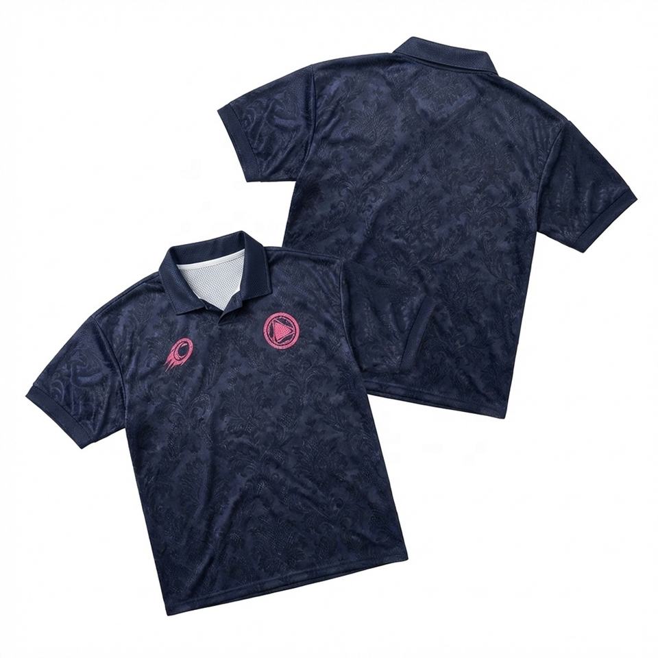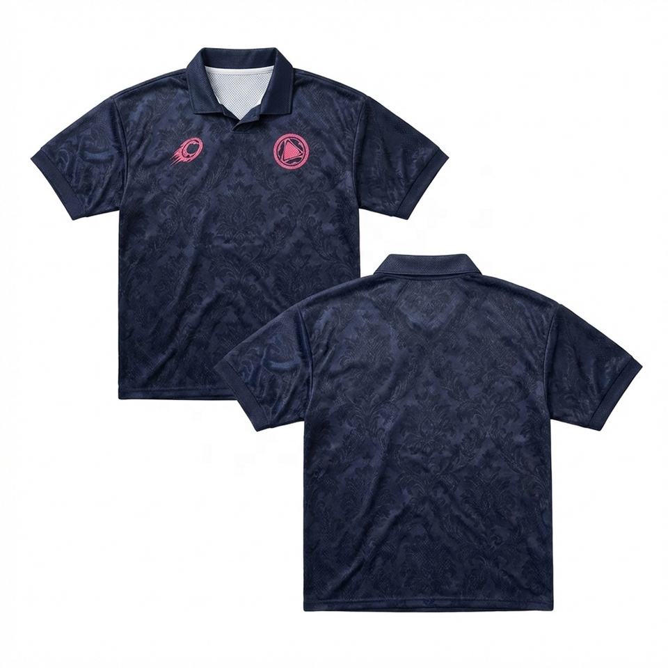Maillot de football rétro personnalisé Blokecore à col en V, bleu marine, texture subtile, sublimation intégrale, entraînement, OEM ODM