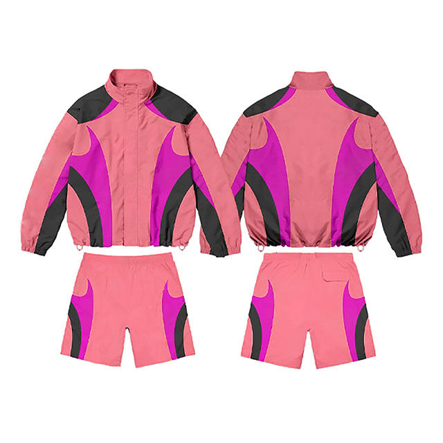 Ensemble coupe-vent en polyester à blocs de couleurs rétro personnalisé pour hommes Hip Hop Streetwear coupe-vent extérieur à fermeture éclair imprimé coupe-vent