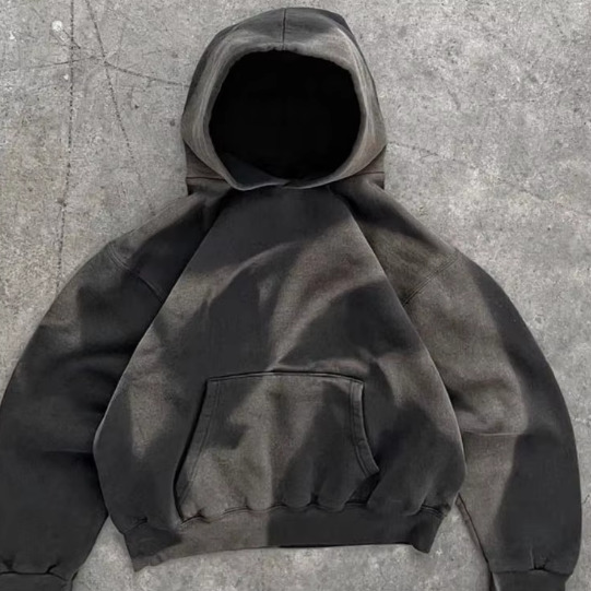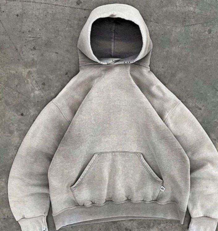 Sweat à capuche vintage gris rétro personnalisé en molleton bouclette 100 % coton épais 400 g/m² pour homme, effet délavé soleil et délavé à l'acide