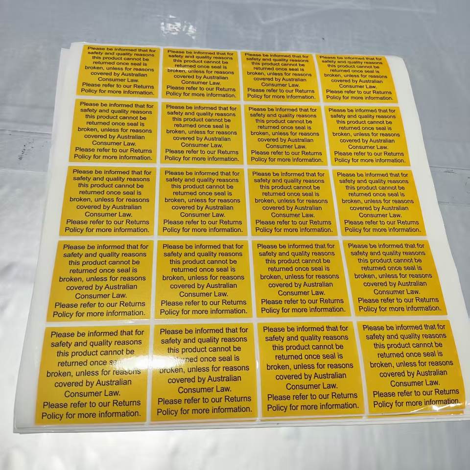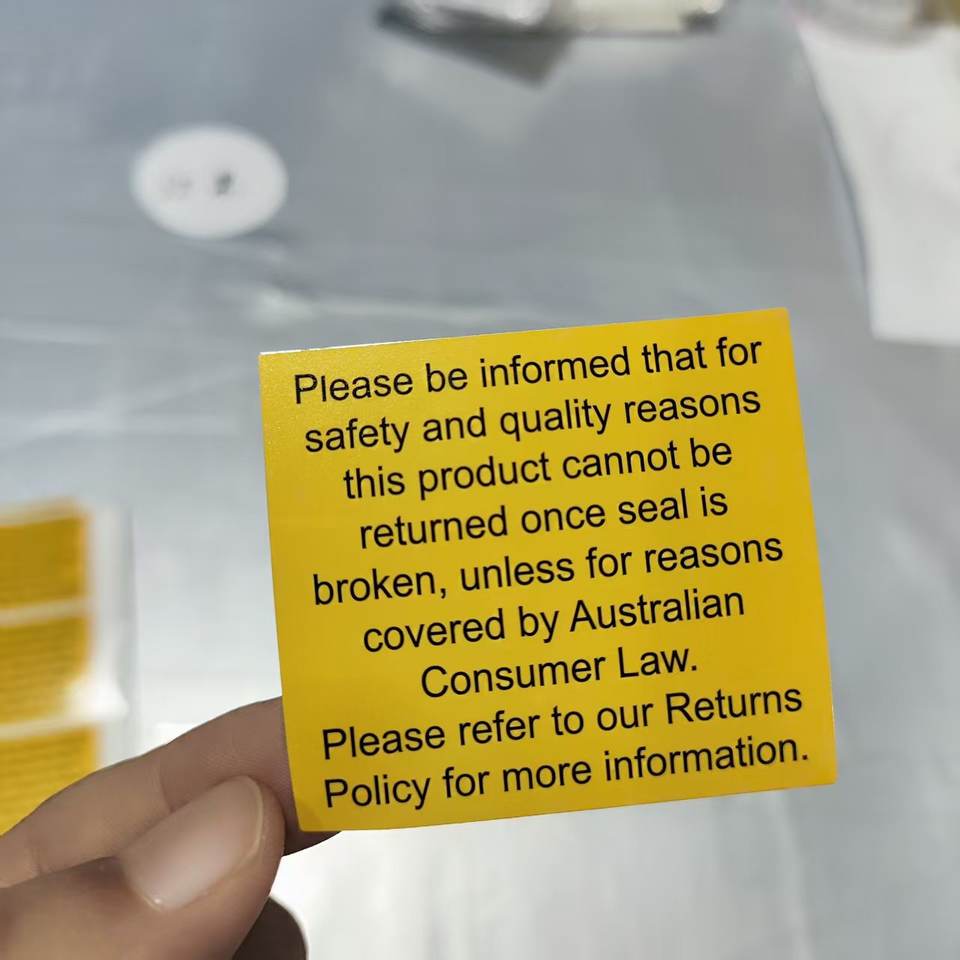 Étiquettes d'avertissement sur la politique de retour personnalisée - Autocollants en papier enduit autocollants pour produits